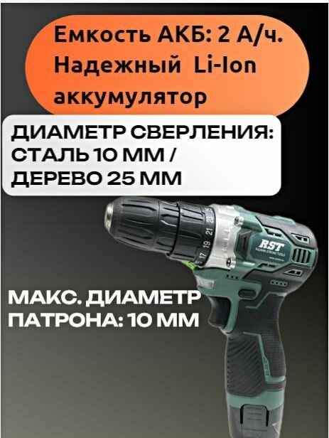 Аккумуляторный шуруповерт бесщеточный 12 В 2 А/ч RST-2232 информация: