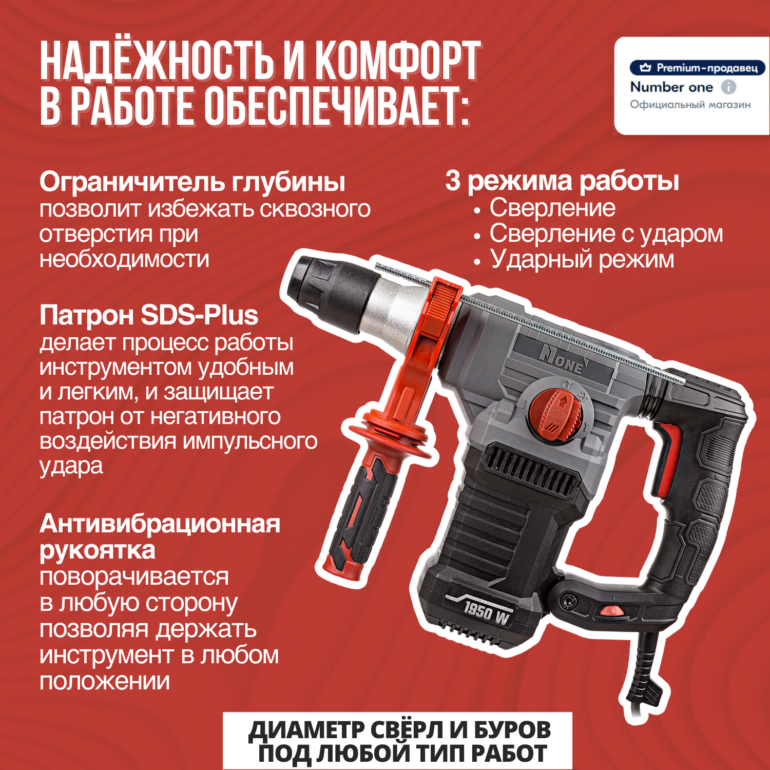 10 цен на Перфоратор электрический NUMBER ONE EH1950/32-2 1950Вт, 4-х режим, 6,0 Дж, набор, SDS+, кейс.