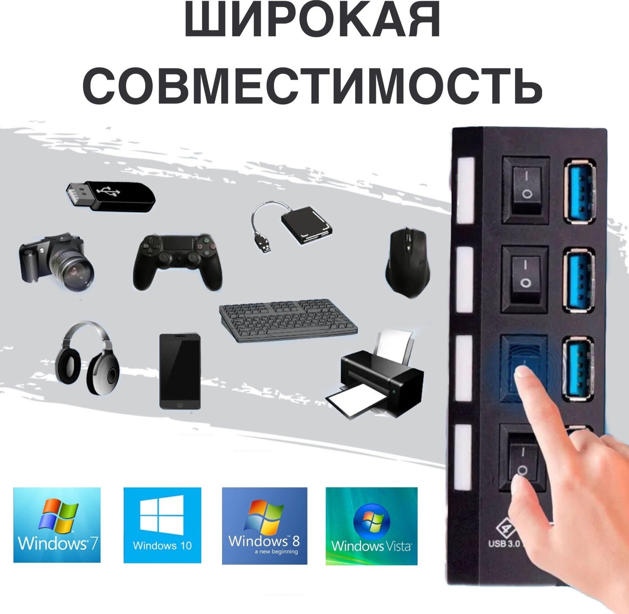 Отзывы на Разветвитель USB Hub на 4 порта с выключателями / USB 2.0 концентратор для переферийных устройств / ХАБ разветвитель - черный
