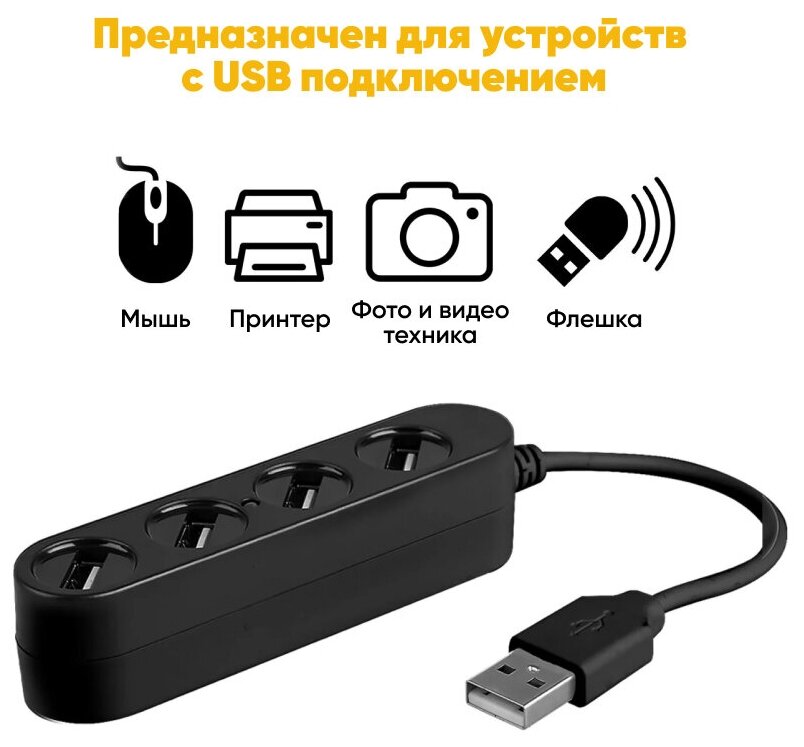 Разветвитель USB 2,0 для зарядки, цвет в ассортименте, black