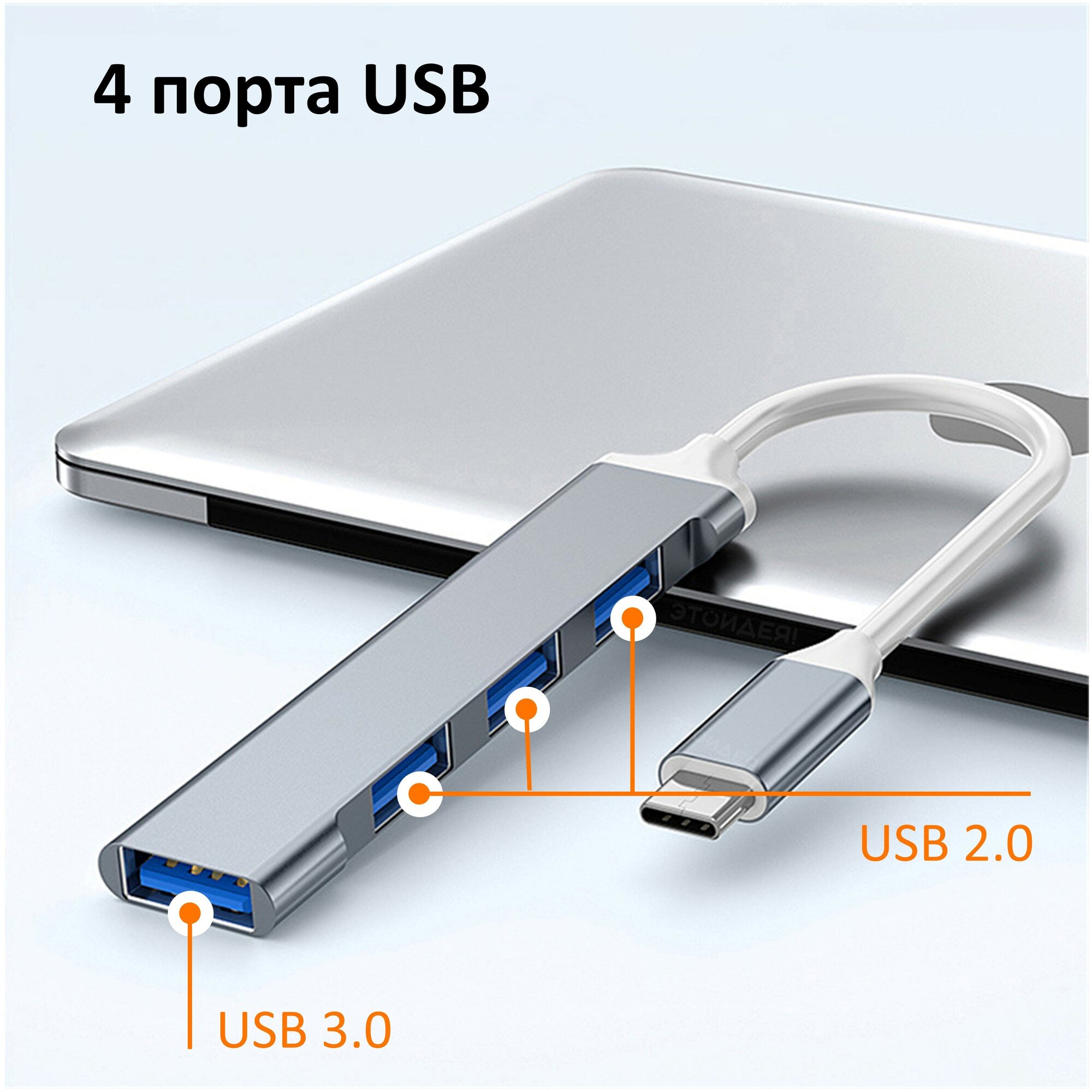 10 цен на Переходник с Type-C на 4 USB (3.0 и 2.0), OTG, темно-серый / хаб для MacBook, ноутбука, смартфона, планшета / NOBUS