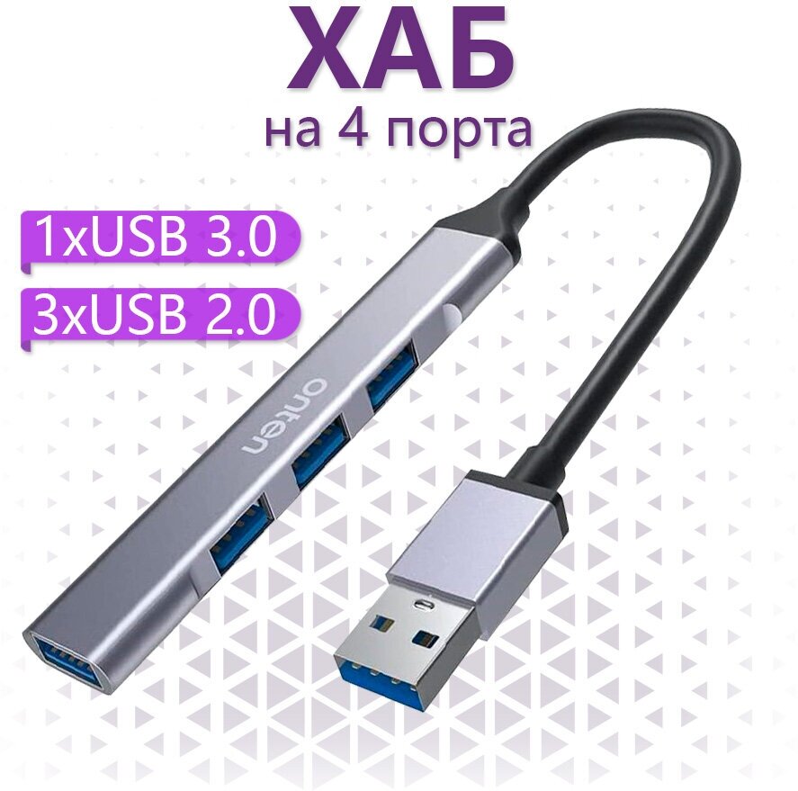 10 цен на USB 3.0 хаб Onten на 4 порта 3xUSB 2.0 , USB 3.0 - Серый
