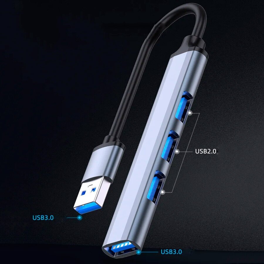 HUB USB 1.2 метра / USB-ХАБ / разветвитель / USB-hub 4 порта / HUB USB для периферийных устройств / Чёрный