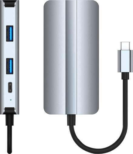 USB-хаб Разветвитель Type-C с 4 портами USB 3,0, USB 3,0, 5 Гбит/с серый металлик