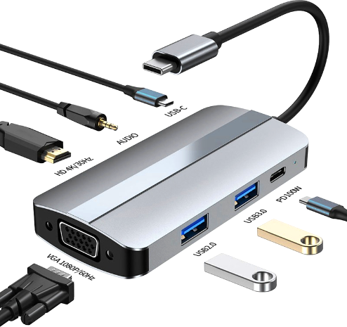 10 цен на Хаб/Концентратор USB-C HUB 7 в 1/Переходник с USB 2.0/3.0, VGA, Type-C, HDMI 4K, Audio, PD Зарядка до 100W для MacBook Pro/Air