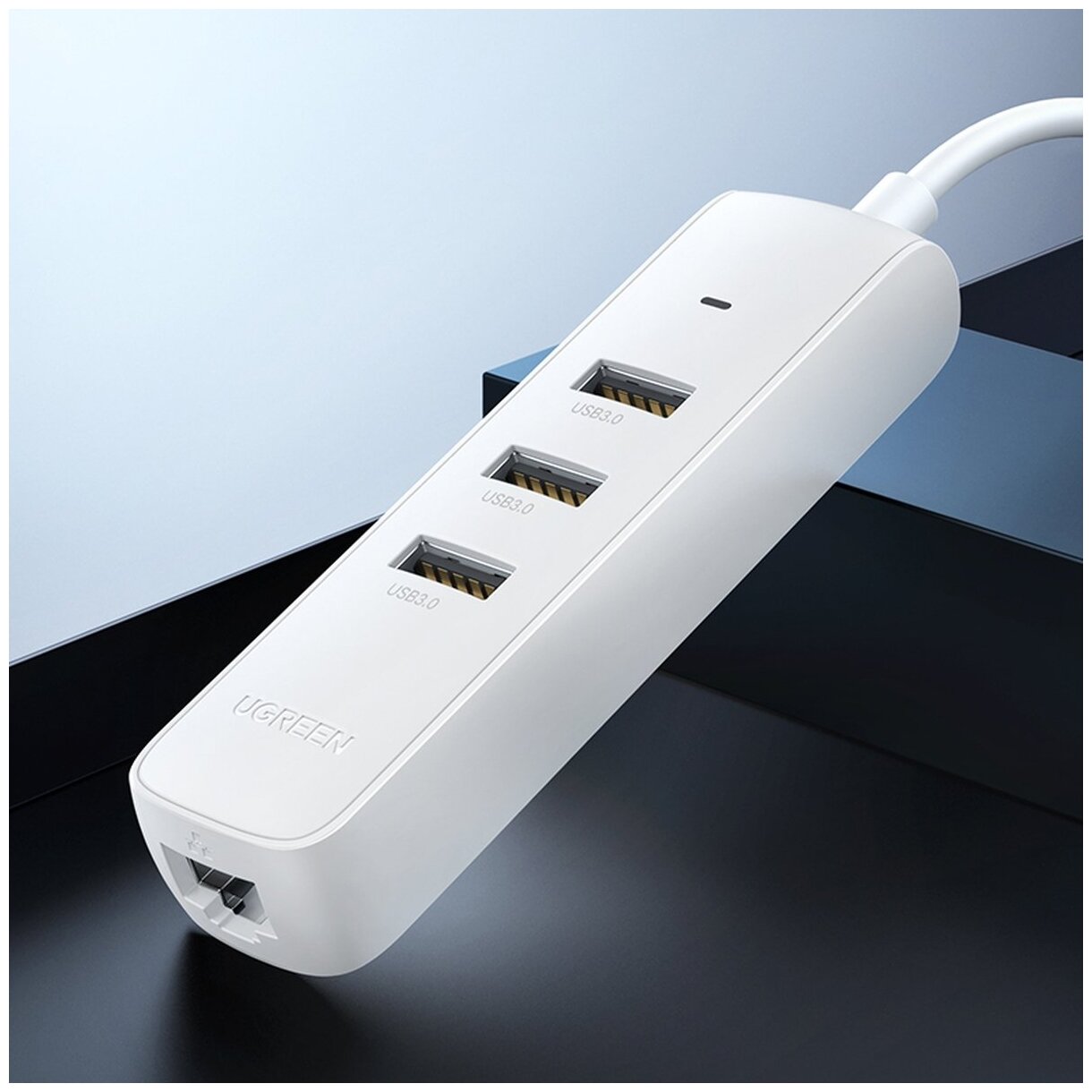 10 цен на Хаб Ugreen CM416 Usb-c to 3xUSB 3.0+RJ45 White 50620