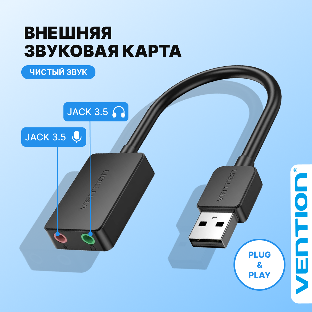 Отзывы на Vention Внешняя звуковая карта на 2 порта Jack 3,5 для наушников, микрофона, компьютера, адаптер USB 2.0, арт. CDYB0