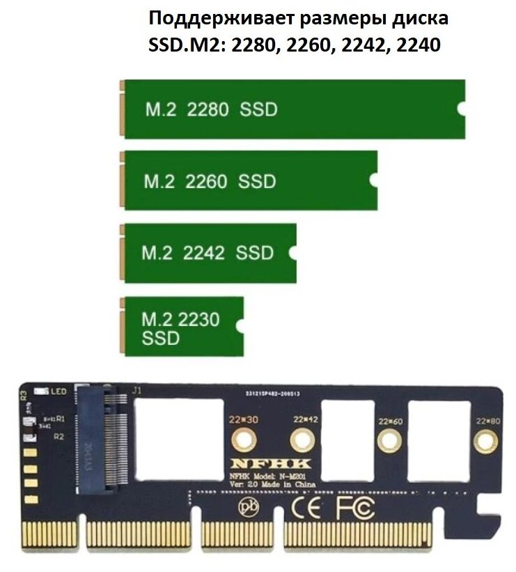 Адаптер NGFF для SSD M.2 (NVMe) в слот PCI-e 3.0 x4-х16 информация: