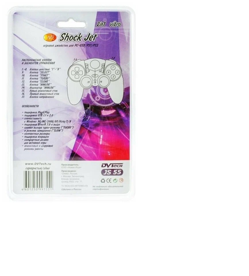 Джойстик PC/PS2 DVTech JS55 Shock Jet (серебро) информация: