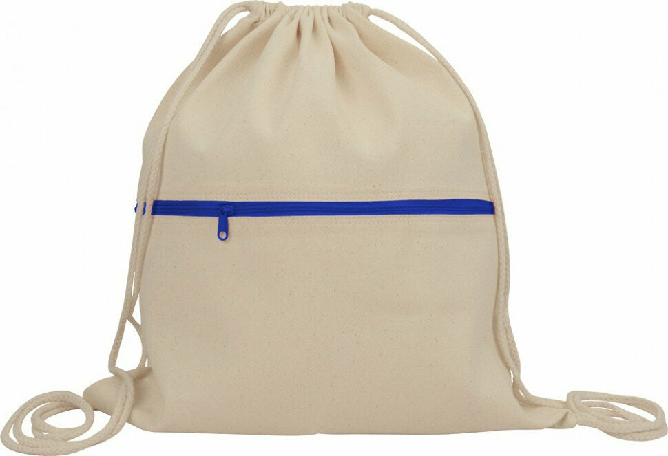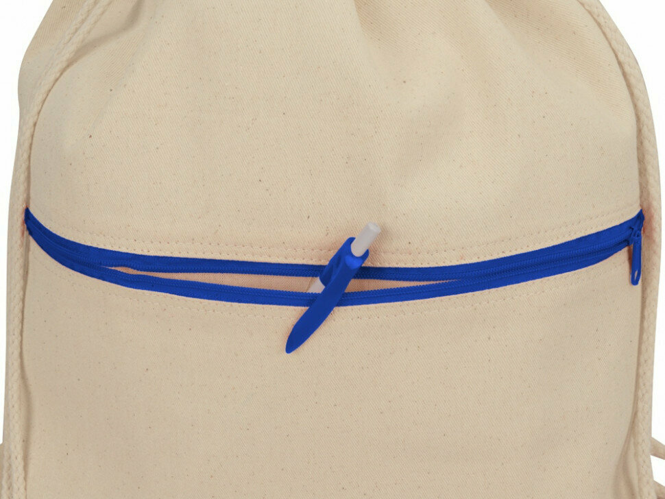Рюкзак-мешок хлопковый Lark с цветной молнией, натуральный/синий информация: