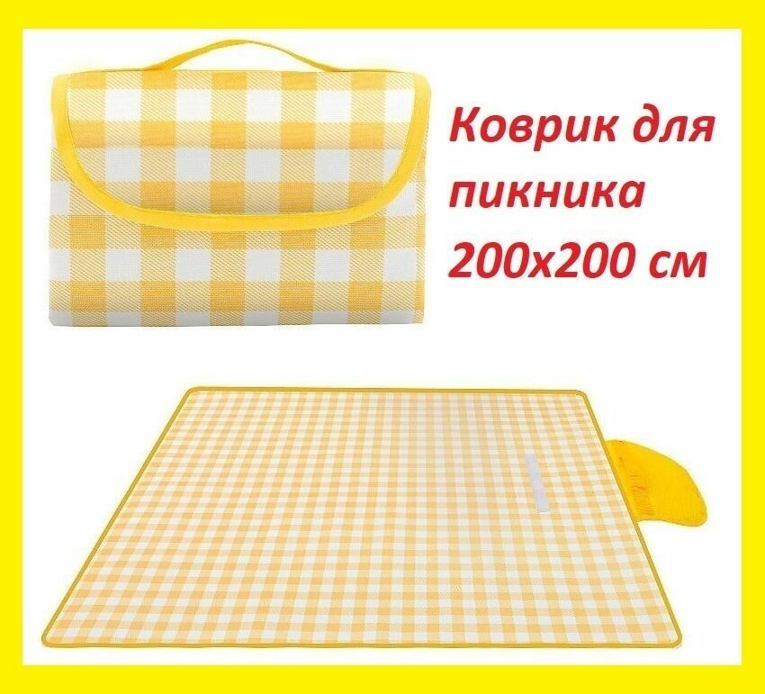 Коврик для пикника 200х200 см / Покрывало для похода, кемпинга, пляжа, отдыха на природе и загара желтое информация: