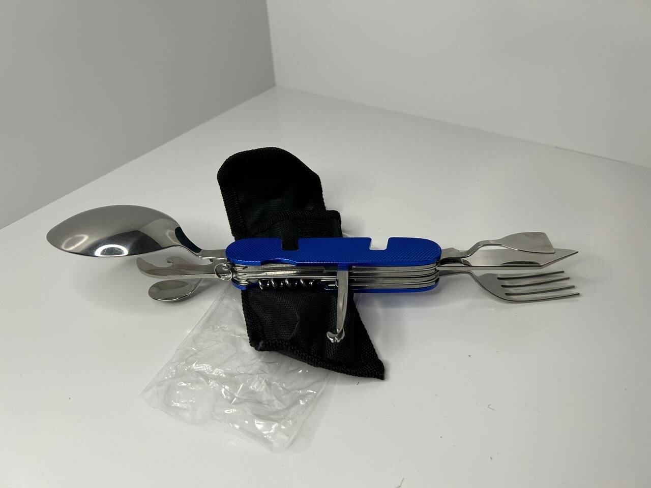 Отзывы на Мультитул ложка-вилка Pirat, синий, 4 предмета, металлическая рукоять