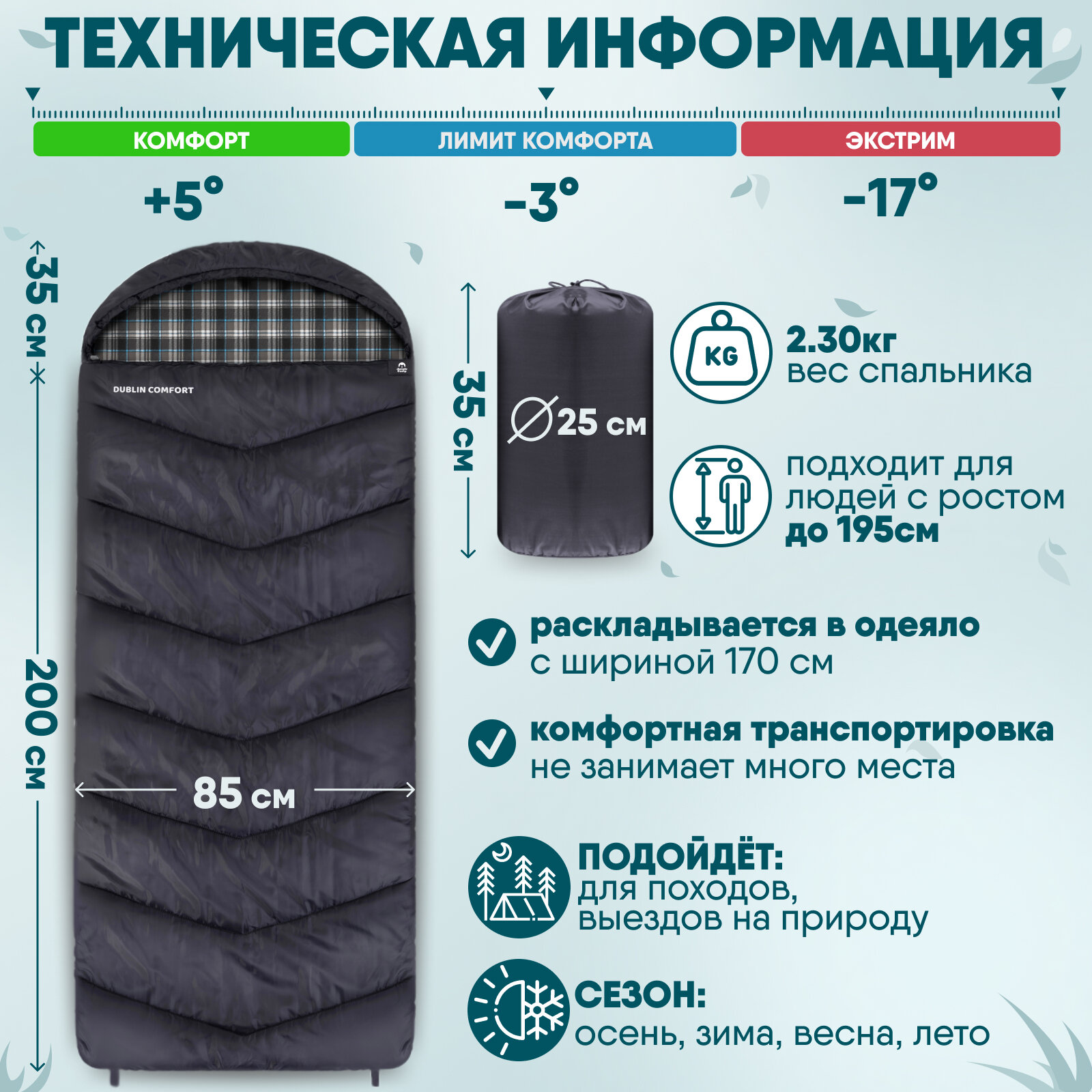Спальный мешок Jungle Camp Dublin Comfort, с фланелью, левая молния, цвет: серый информация: