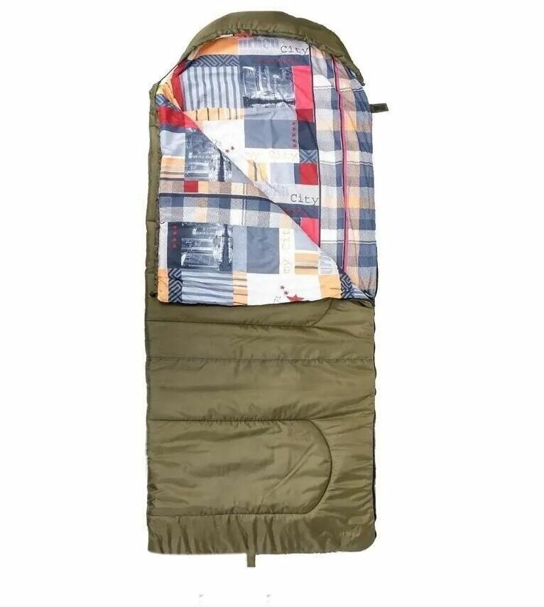 Спальный мешок OLYMPUS Wide Plus 400 (220х106, холлоф., зеленый/город) Helios