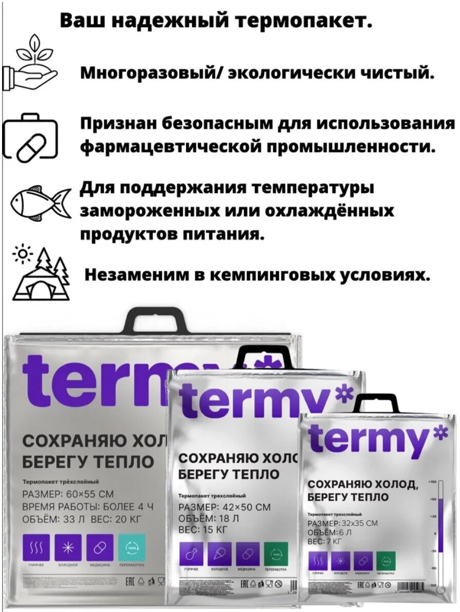 Термопакет ТерПак Биг Стандарт без ручки 60х55 см, упаковка 3 шт.