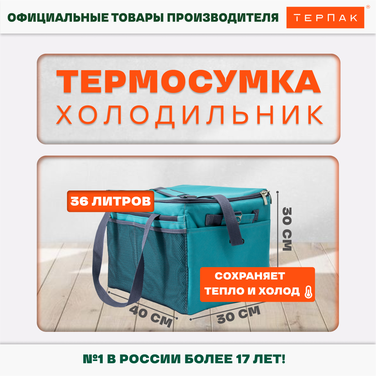 Термосумка ТерПак 36 литров, 400х300х300 мм., бирюзовый информация:
