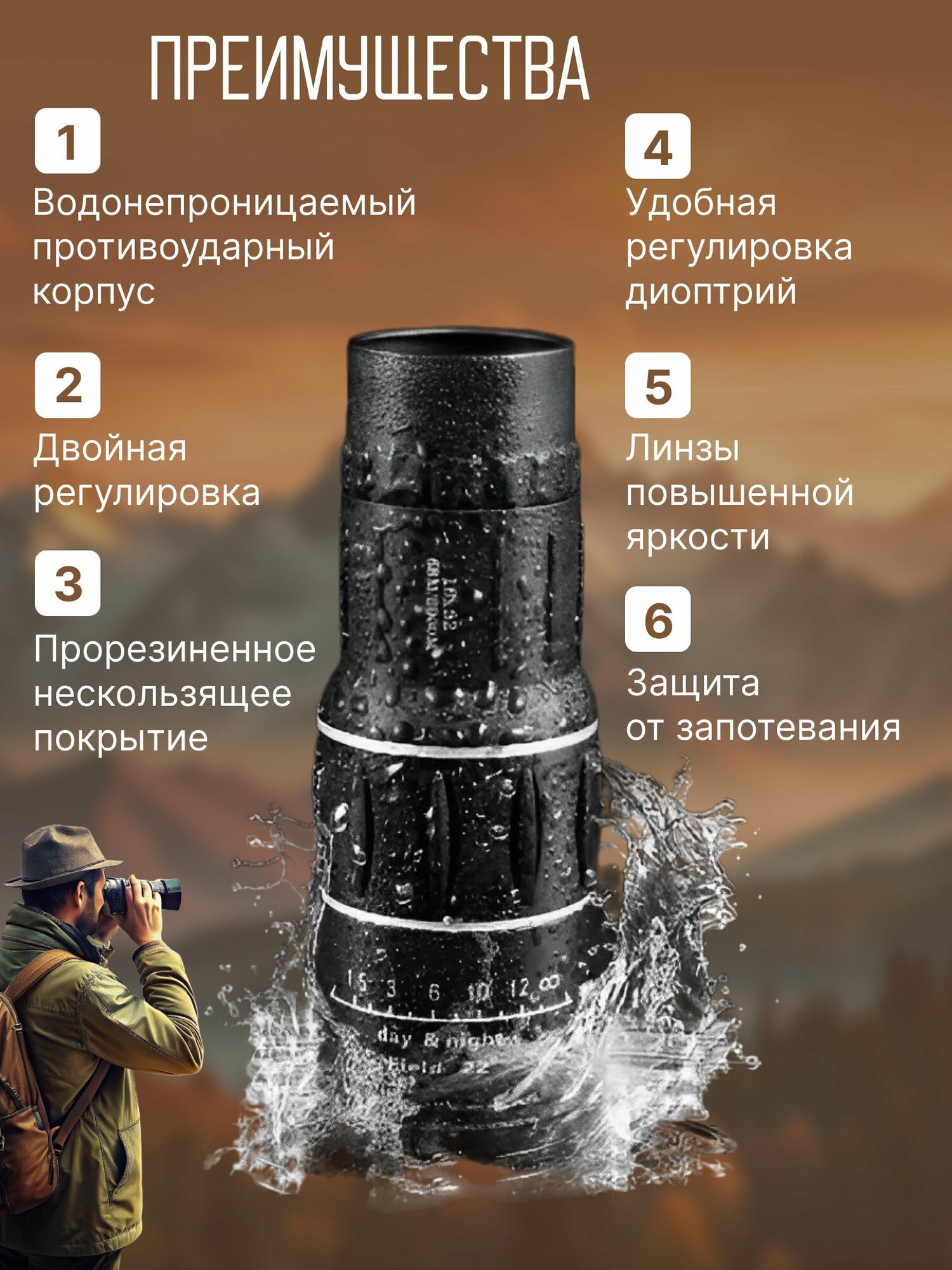 Монокуляр компактный тактический для охоты рыбалки туризма 16x52 информация: