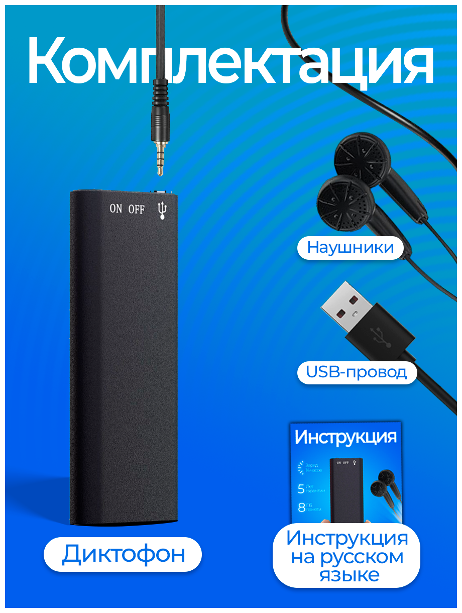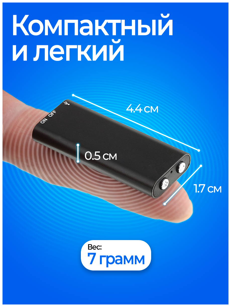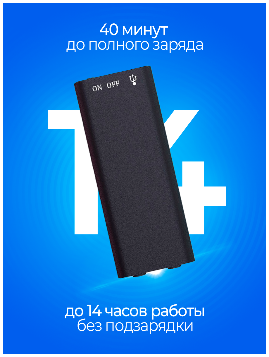 Мини диктофон портативный, цифровой 8 ГБ, 14 часов записи, профессиональный, mp3 плеер, флешка для прослушивания и записи звука информация: