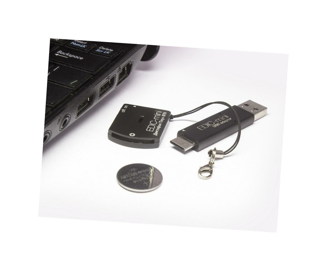 Мини диктофон для записи разговоров - Mini-edic B76-150HQ (CR2016) (F1020EU) +подарок (повербанк 10000 mAh) (VOX активации голосом, цифровой Knowles информация: