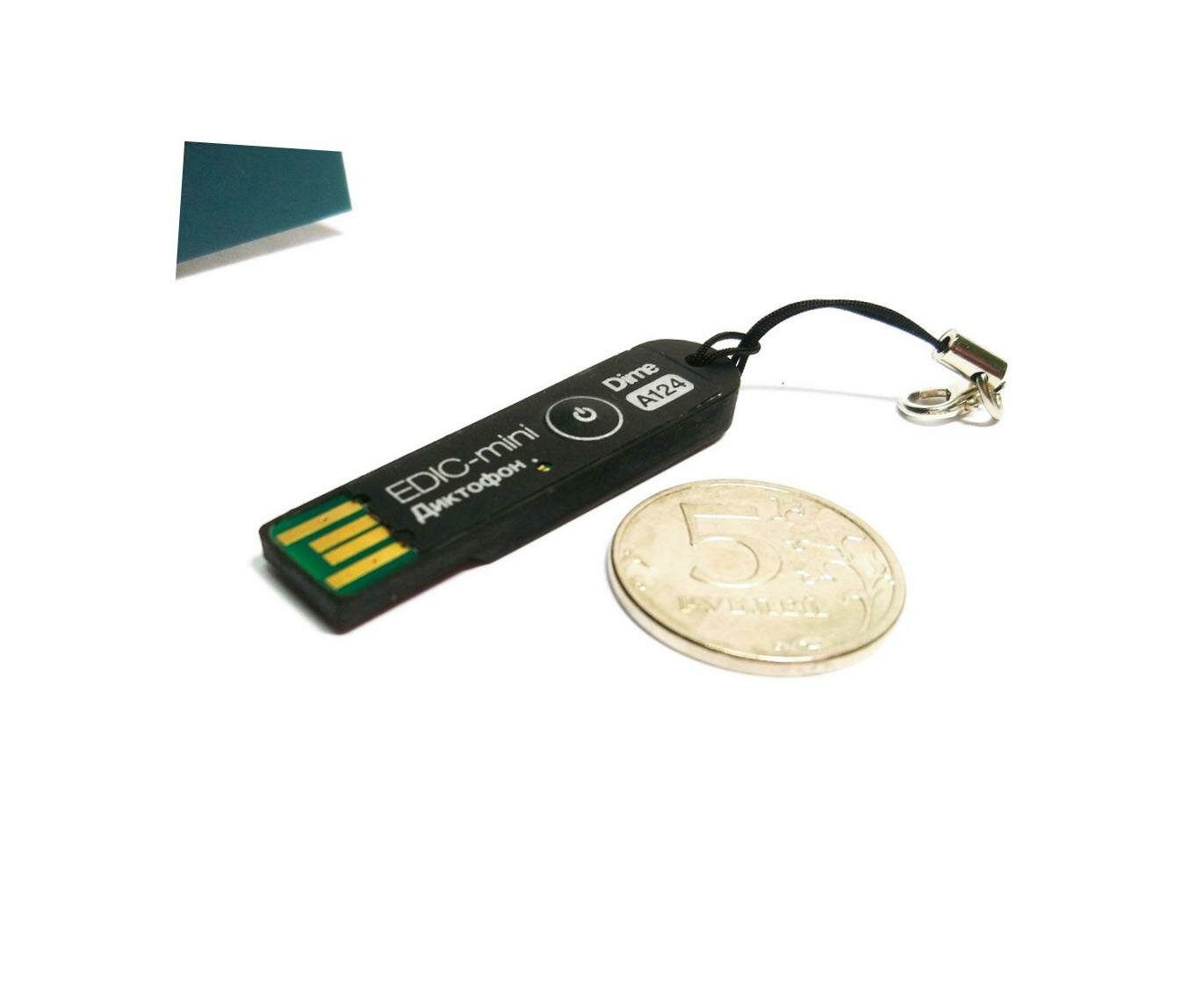Самый маленький диктофон Edic-mini DIME мод: A125 (M2238RU) + подарок (Power-bank 10000 mAh) - компактный диктофон простой - 7 х 15 х 45 мм