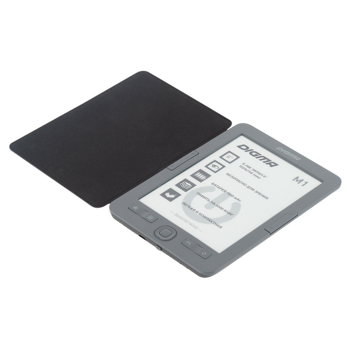10 цен на Электронная книга Digma M1 6" E-ink HD Pearl 758x1024 600MHz 128Mb/4Gb/SD/microSDHC темно-серый (в компл.:обложка)