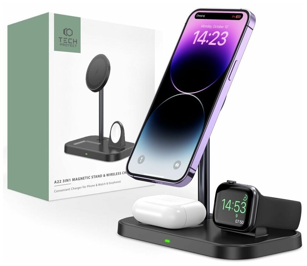 Док-станция Tech-Protect QI15W A22 3в1 MAGNETIC MAGSAFE беспроводная зарядка (черный) информация: