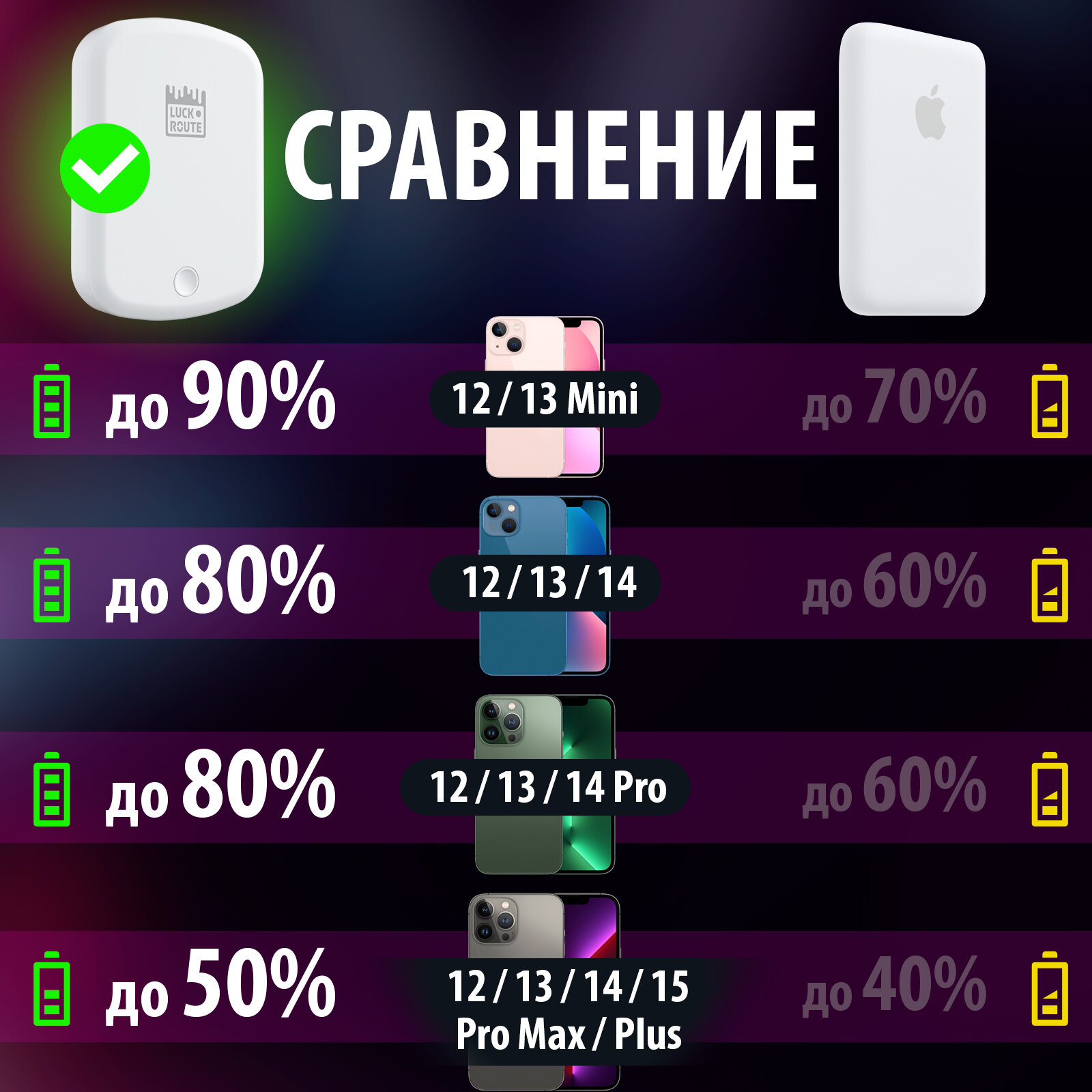 Мы выбрали 10 лучших цен на Внешний аккумулятор Luckroute MagSafe Power Bank 5000 mAh для iPhone, белый. Перед тем как купить Внешний аккумулятор Luckroute MagSafe Power Bank 5000 mAh для iPhone, белый посмотрите найденные предложения из Яндекс Маркета и других сайтов на основе XML фидов.