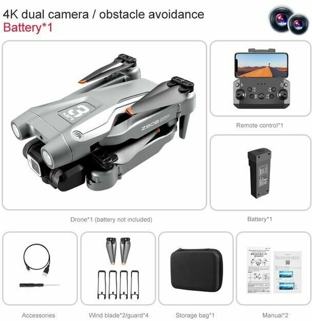 Дрон квадрокоптер Z908 Pro WIFI FPV Mini с двумя камерами ESC 4K Hdr и трехсторонним огибанием препятствий информация: