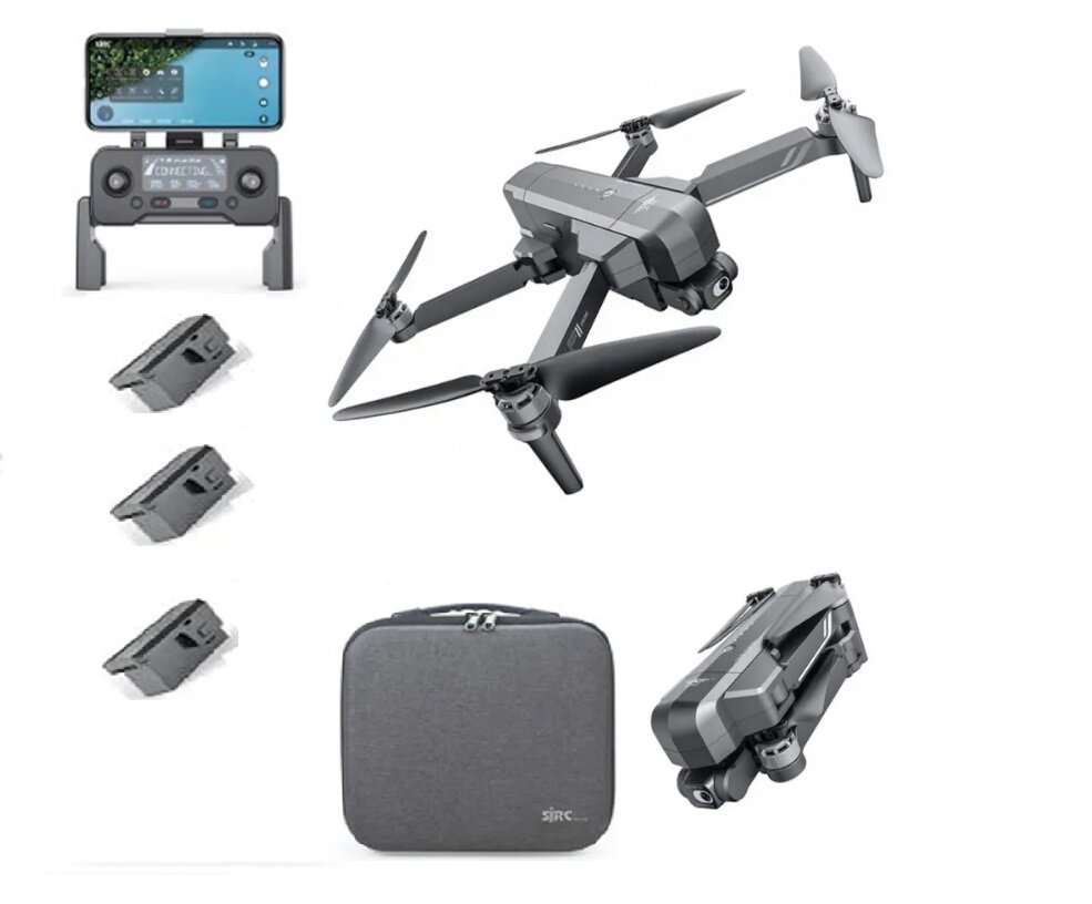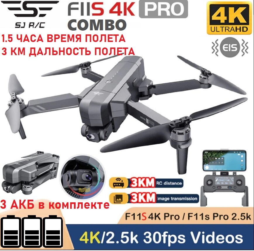 10 цен на Квадрокоптер с камерой - SJRC F11S 4К Pro COMBO (3 аккумулятора, дальность 3 км, 1.5 часа полета, GPS, 5G FPV, 2-осевой подвеc)