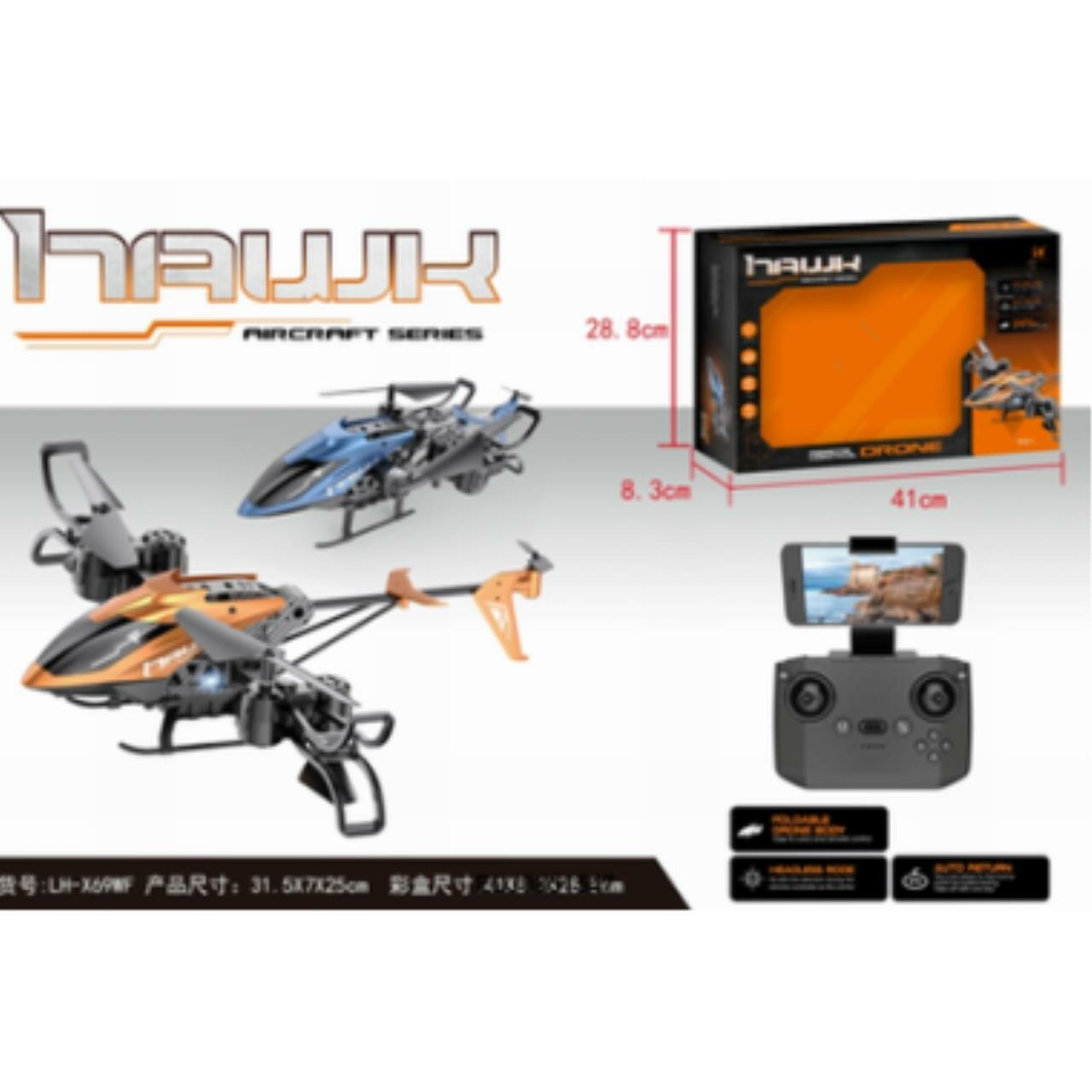 Квадрокоптер LH-X15WF, камера, передача изображения на смартфон, Wi-FI, цвет чёрно-оранжевый