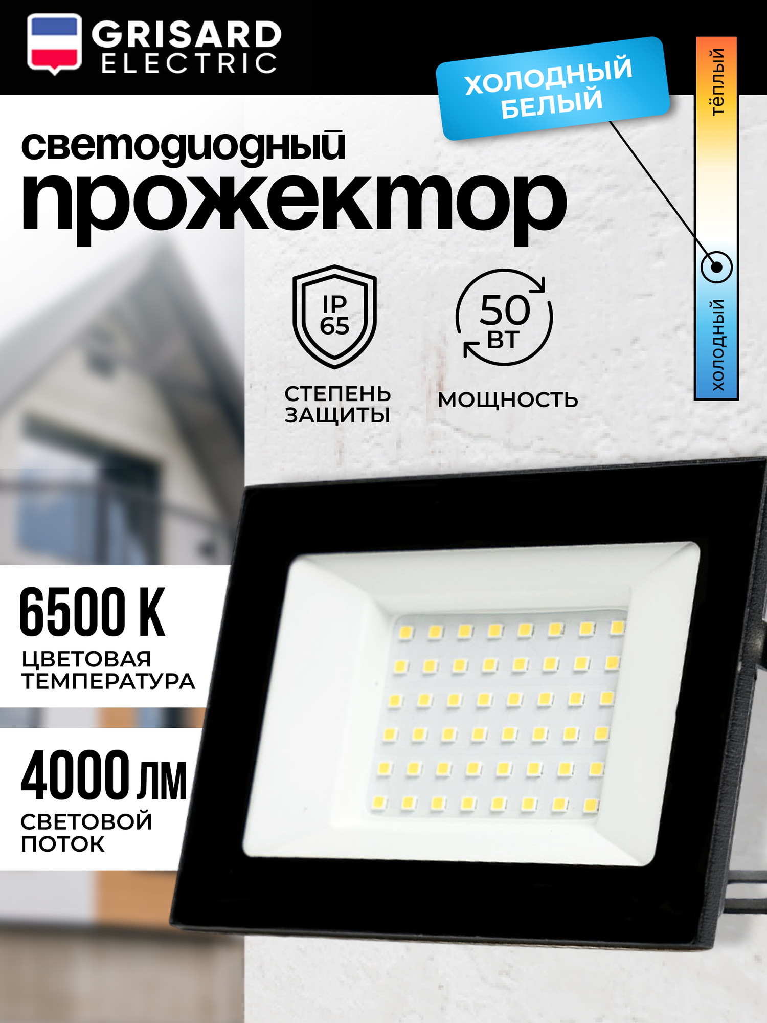 Прожектор уличный светодиодный СДО 50 черный IP65 6500 K информация:
