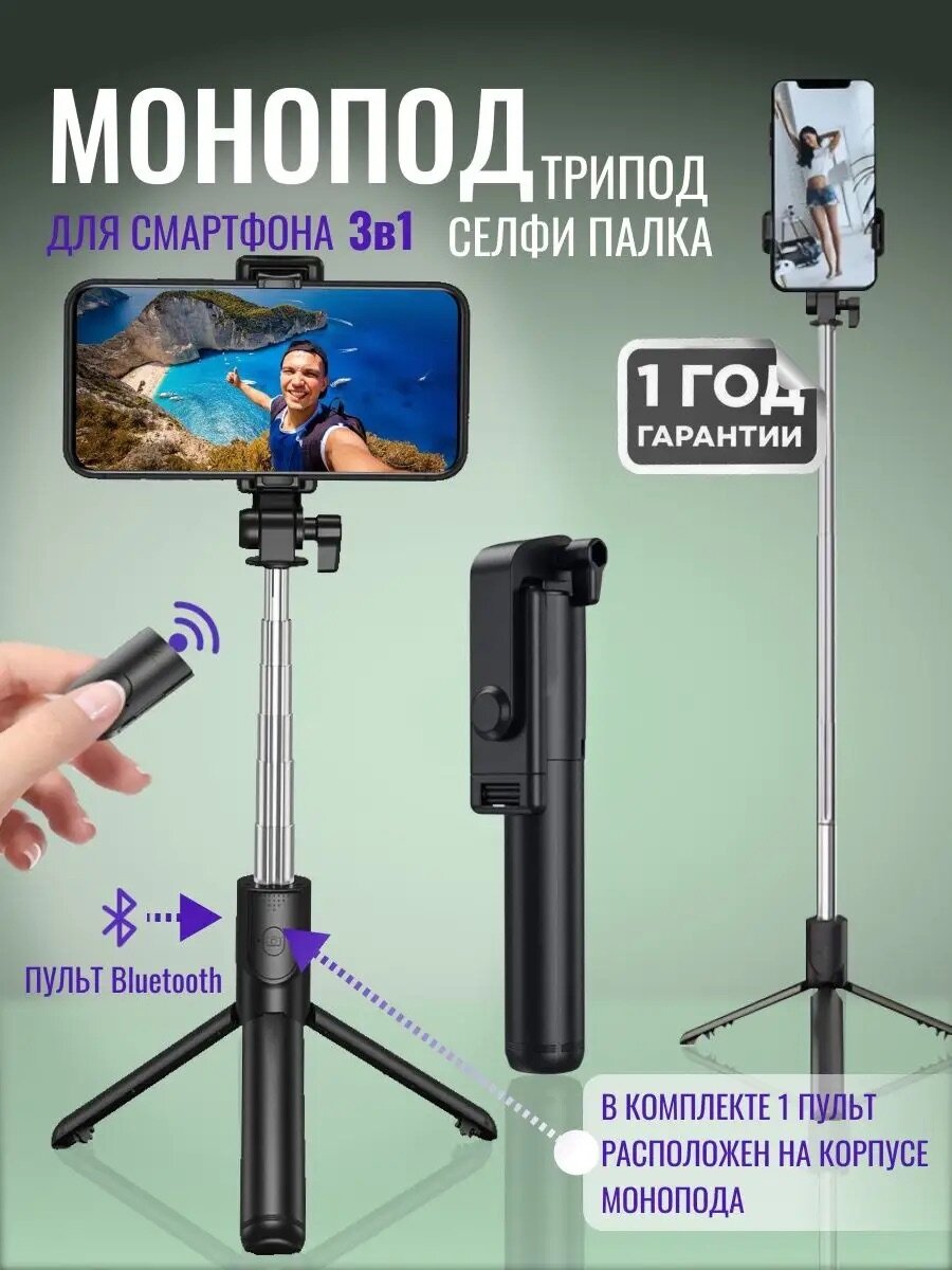 Отзывы на Монопод трипод для телефона с пультом Bluetooth селфи-палка штатив Remizoff