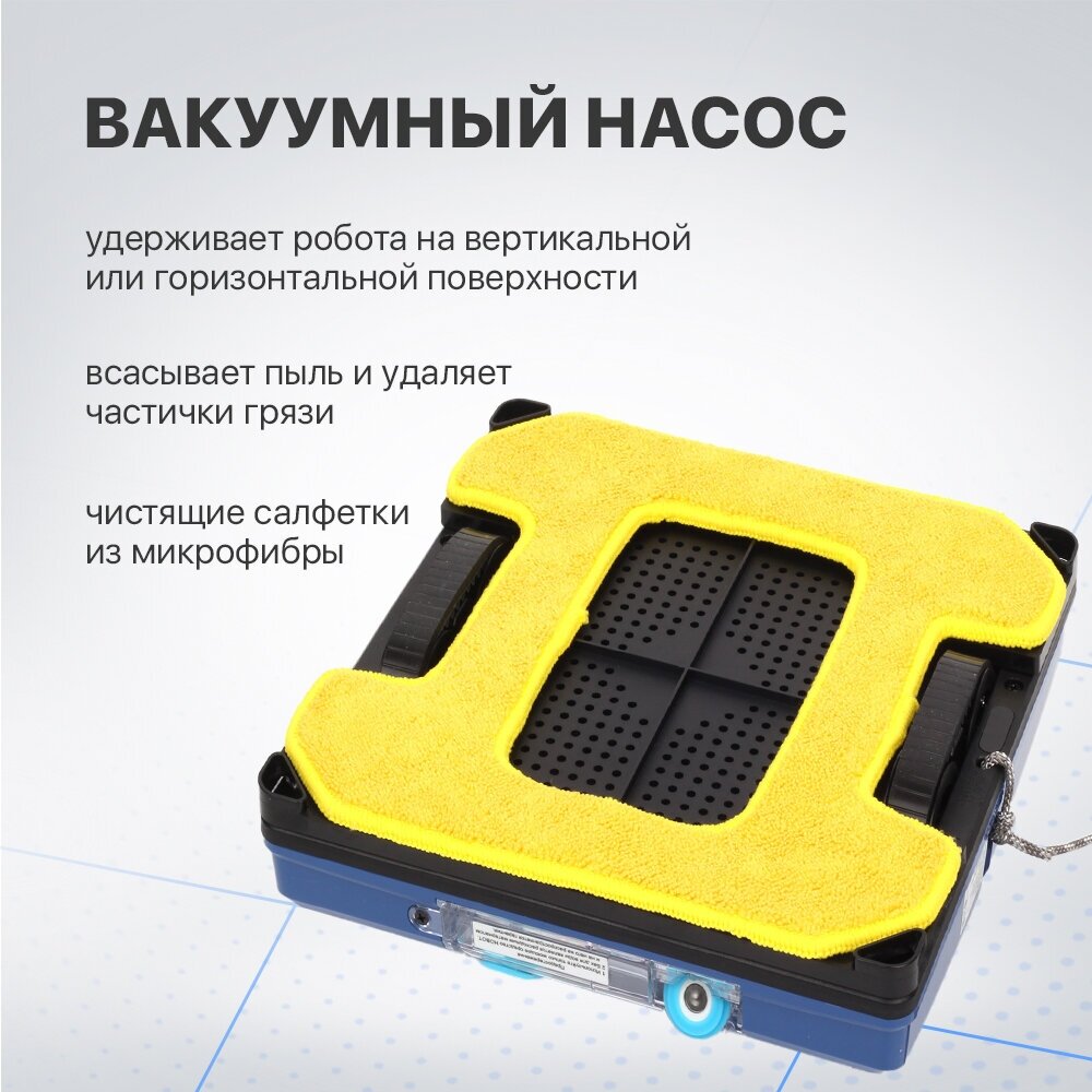 Робот-мойщик окон, с распылителем, страховочный шнур 4 м, пульт ДУ, 90 Вт, 10 сменных тряпок