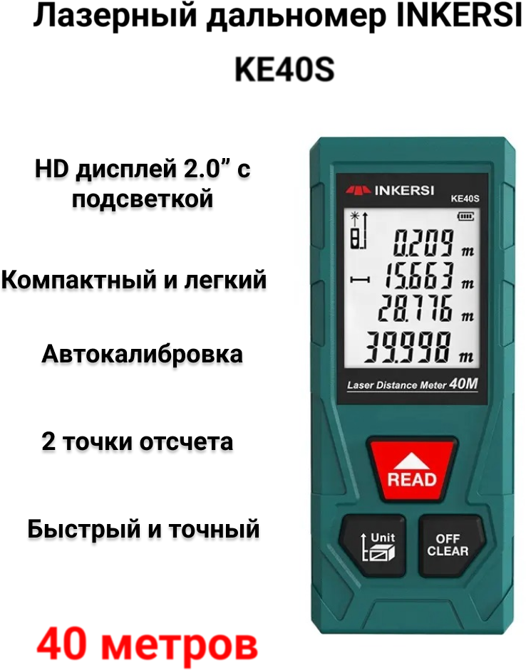 Дальномер лазерный INKERSI KE40S, 40 метров информация: