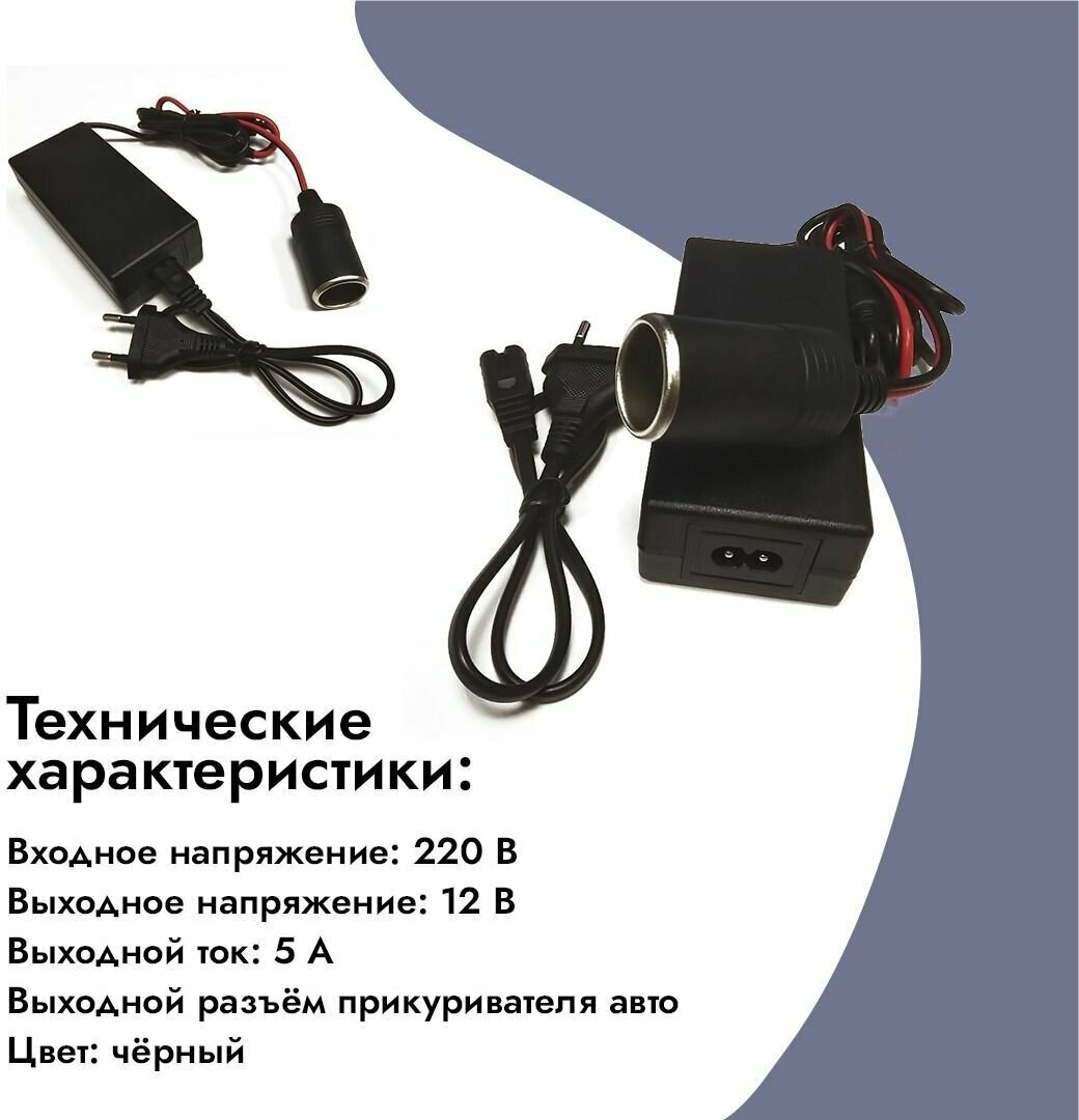 Адаптер сетевой с гнездом прикуривателя с 220V на 12V (5 Ампер) информация: