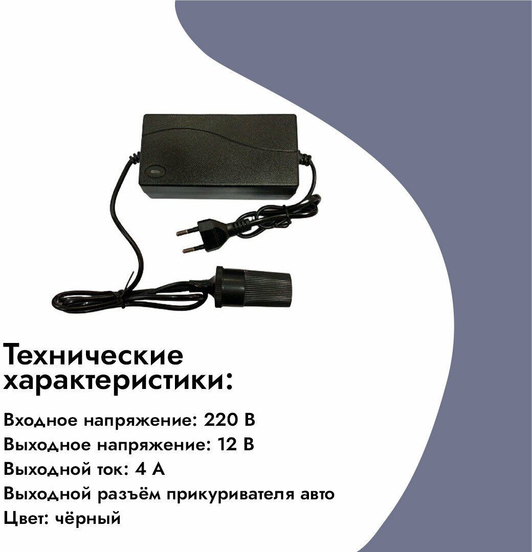 Адаптер сетевой с гнездом прикуривателя с 220V на 12V (4 Ампера) информация: