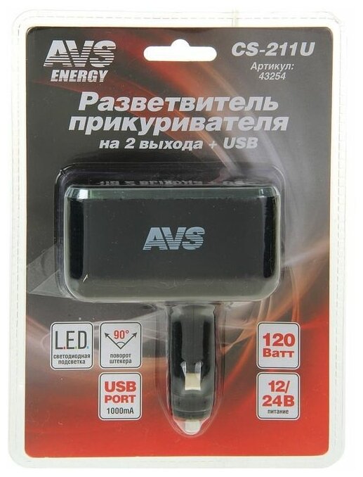 Отзывы на 43254 Разветвитель прикуривателя 12/24 (на 2 выхода+USB) CS211U