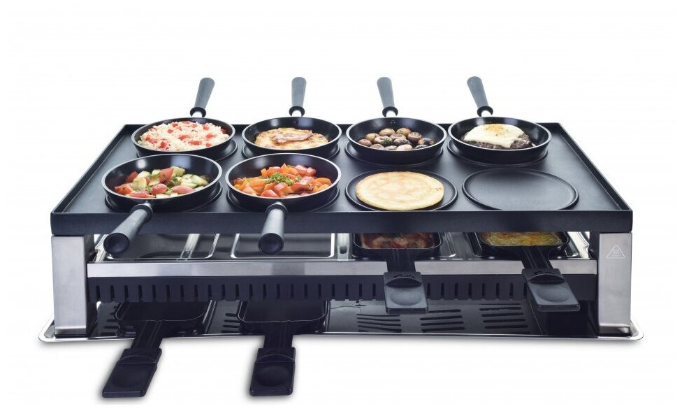 | Дополнительная информация | двухсторонняя съемная пластина: 1 сторона нет рифленая/гладкая, 2 сторона нет для мининетвока, блинов, мининетпиццы; в комплекте: 8 сковородок мининетвок, 8 лопаточек |