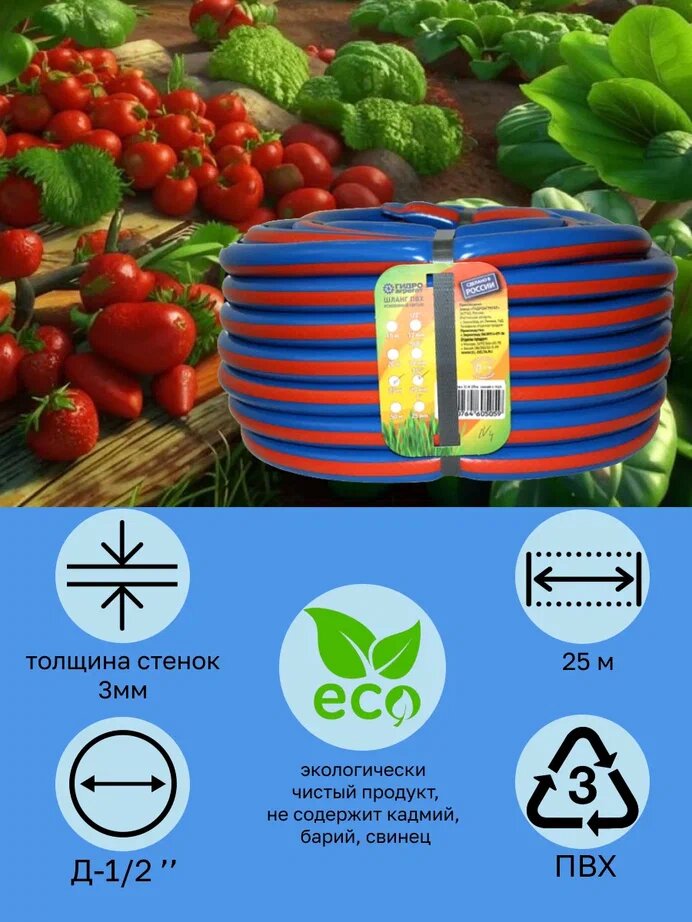 10 цен на Шланг поливочный Д=1/2" (25м) арм., 3-х слойный Гидроагрегат синий с оранжевой полосой