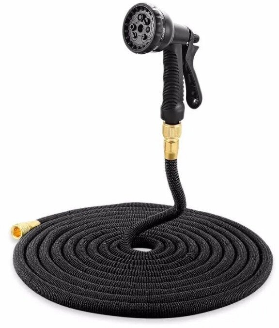 10 цен на Шланг / Шланг растягивающийся для полива "Magic garden hose" 7,5 до 37 метров / С латунными разъемами и распылителем/черный