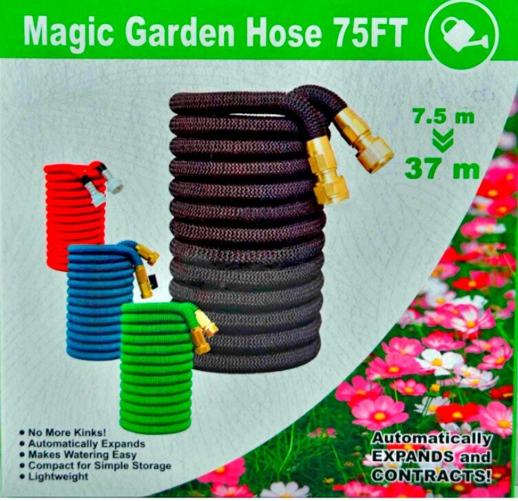 Отзывы на Шланг / Шланг растягивающийся для полива "Magic garden hose" 7,5 до 37 метров / С латунными разъемами и распылителем/черный
