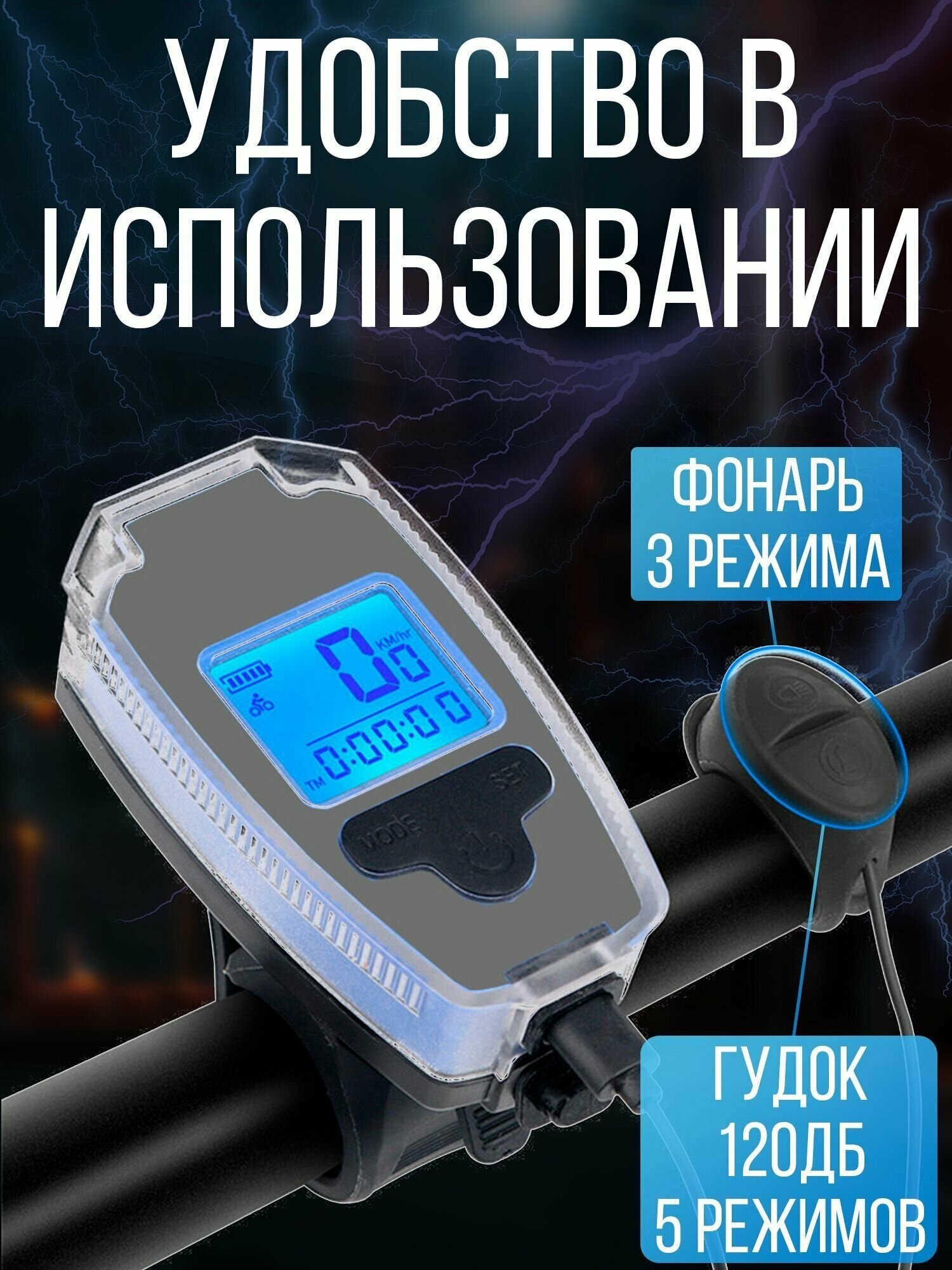 Велокомпьютер с фонарем сигналом для велосипеда ( аксессуар, usb, спидометр, водонепроницаемый ) информация: