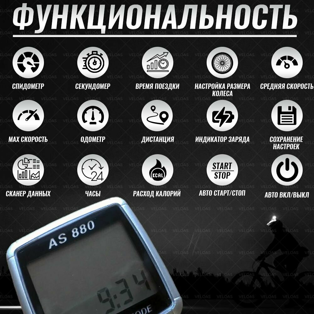 Велокомпьютер ASSIZE 330880 Black, 11 функций информация: