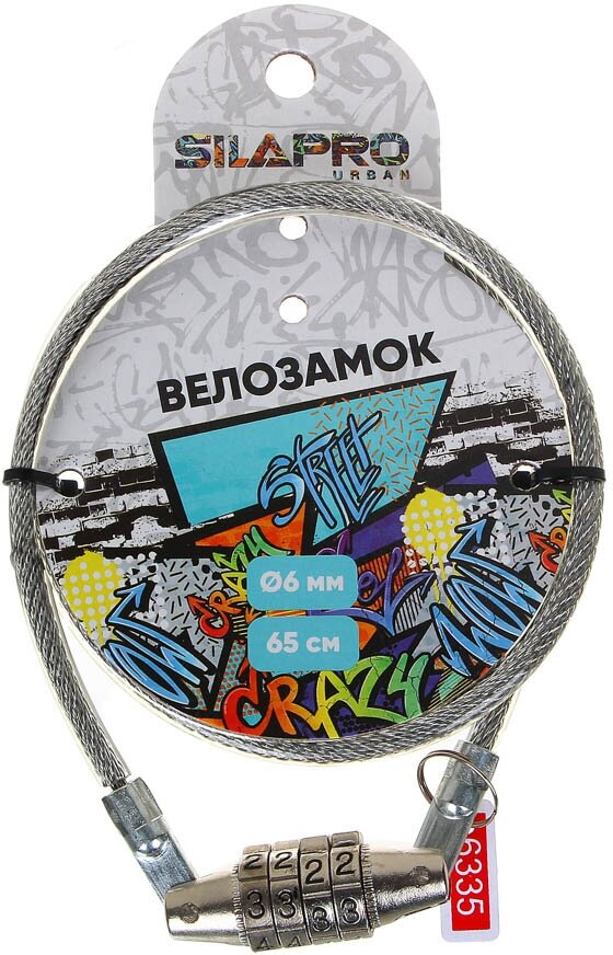40052 Замок велосипедный тросовый с ключом, замок для коляски, для самоката BASARA B3-1000 MBP, 1000 мм