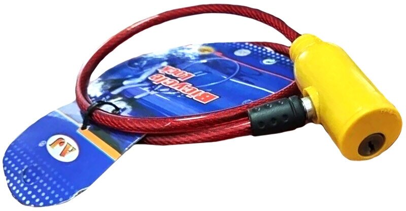 Отзывы на Замок для велосипеда (велозамок) с ключом, со стальным тросом, 620х8 мм, красно-желтый