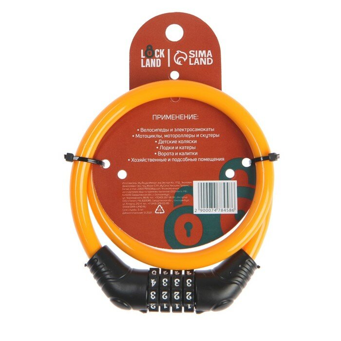 LOCKLAND Замок навесной велосипедный LOCKLAND, кодовый,10 х 650 мм, цвет оранжевый информация: