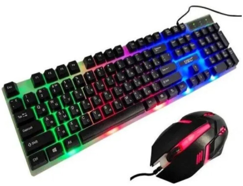 Отзывы на Игровая клавиатура и мышь с подсветкой RGB, механическая проводная игровая клавиатура и мышь для компьютера комплект, черный