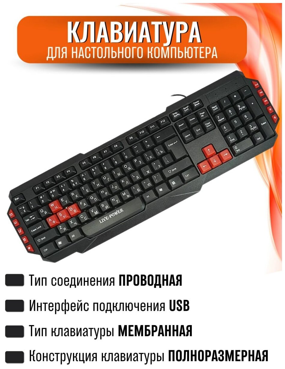 Клавиатура игровая мембранная проводная полноразмерная информация:
