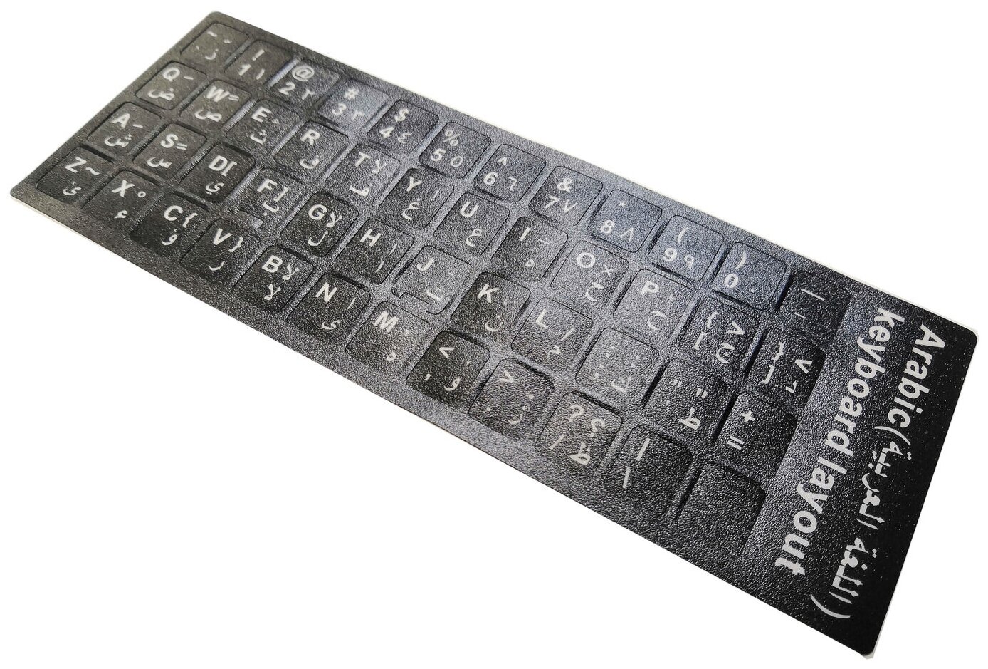 Наклейки арабские на клавиатуру (подложка - черный, арабский - белый, английский - белый) информация: