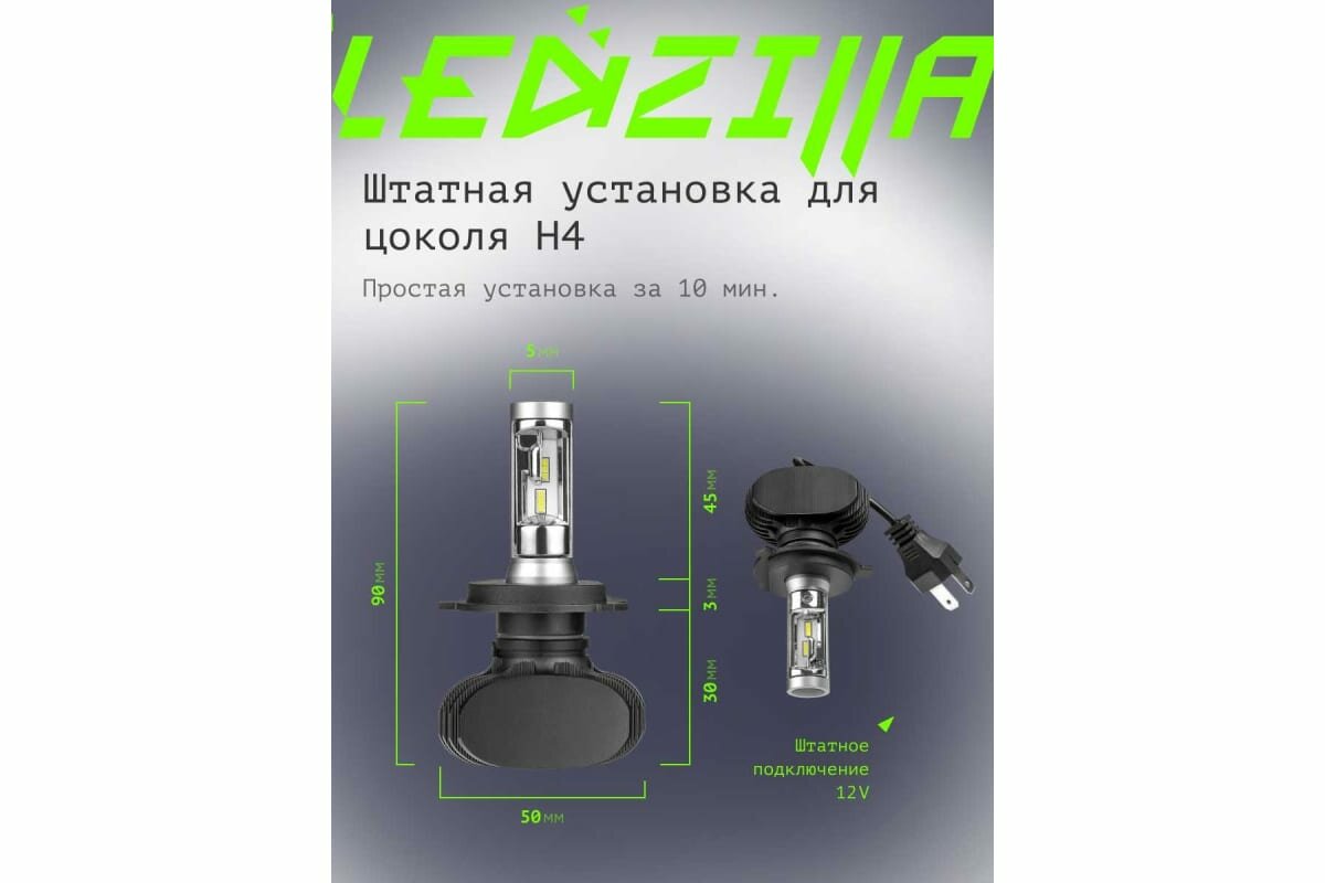 10 цен на Светодиодные лампы LED для авто LEDZILLA S1 H4 25Вт 12В лампочки для автомобилей в фары птф лед , комплект 2шт S1 Pro-H4